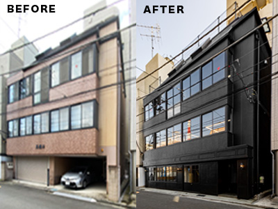 和菓子屋さんの自社ビルから店舗とオフィスのテナントビルへのフルリノベーションです。